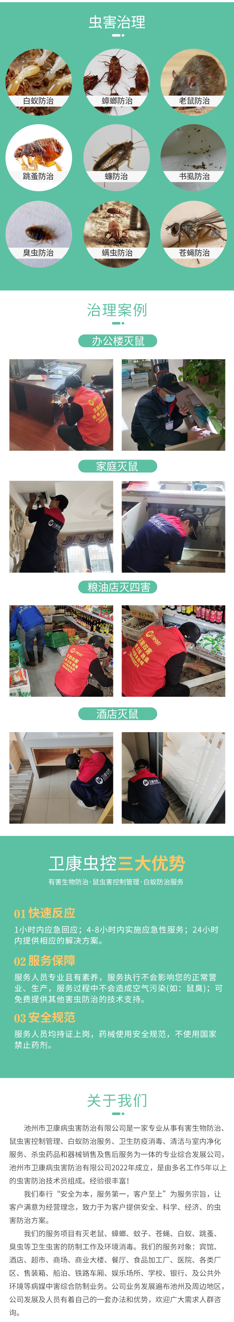 1、環境滅鼠:老鼠需要水、食物以及隱蔽的棲息條件,才能生存和繁殖。因此,創造一個不適宜其生存的環境,就能使一個地方的鼠量大大下降,并能使滅鼠成果容易得到鞏固。所以我公司首先建議搞好環境衛生、清除住宅周圍的雜草、隨意堆放的物品,經常清掃室內外衛生,各種用具雜物收拾整齊,衣箱、衣柜以及書籍、鞋帽等要經常檢查,不使鼠類營巢;斷絕老鼠的食物:鼠的食物不僅包括人的食物,還包括飼料、垃圾、食品行業的下腳料、糞便等,這些東西要存放在加蓋的而且沒有縫隙的容器內,使老鼠得不到食物而被動地去吃投放的毒餌,以達到消滅老鼠的目的。